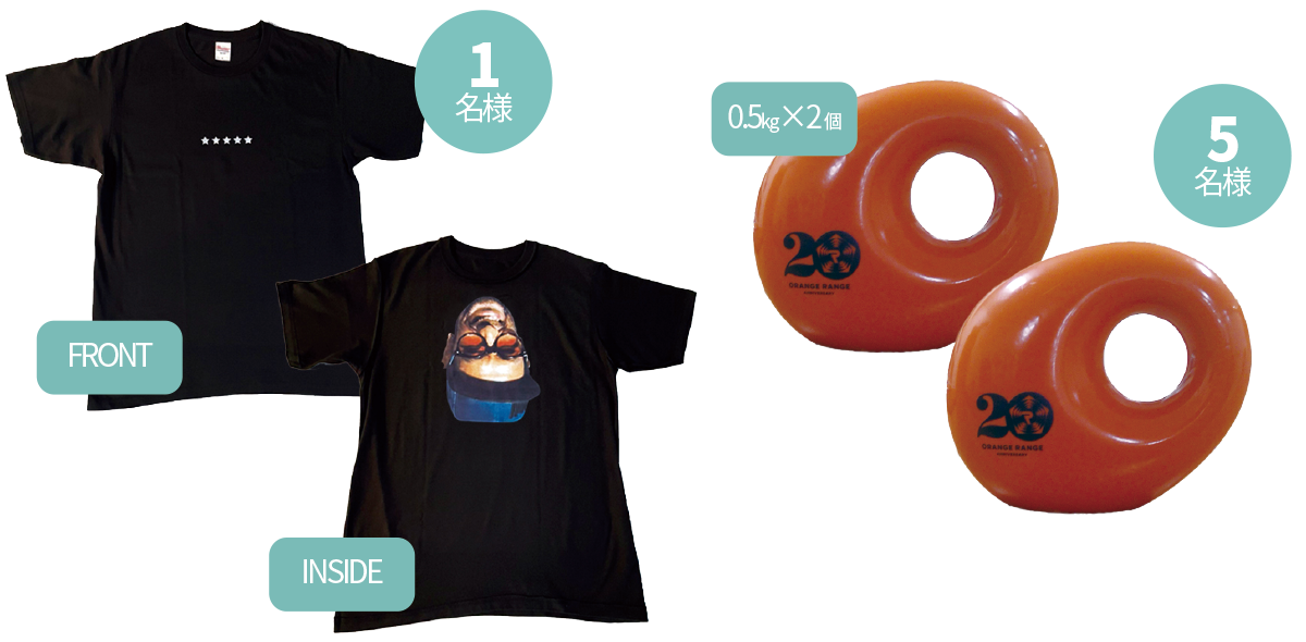 対象期間中にInstagramストーリーで新曲「HEALTH」のミュージックスタンプを使用し、ハッシュタグ #レンジとシェイプアップ とメンション @orangerange_officialをつけて投稿いただいた方の中から抽選で、RYO体モノマネTシャツを1名様、または、IMPHYとのコラボギア ヒップアップ レジスタンスチューブを5名様にプレゼント。
